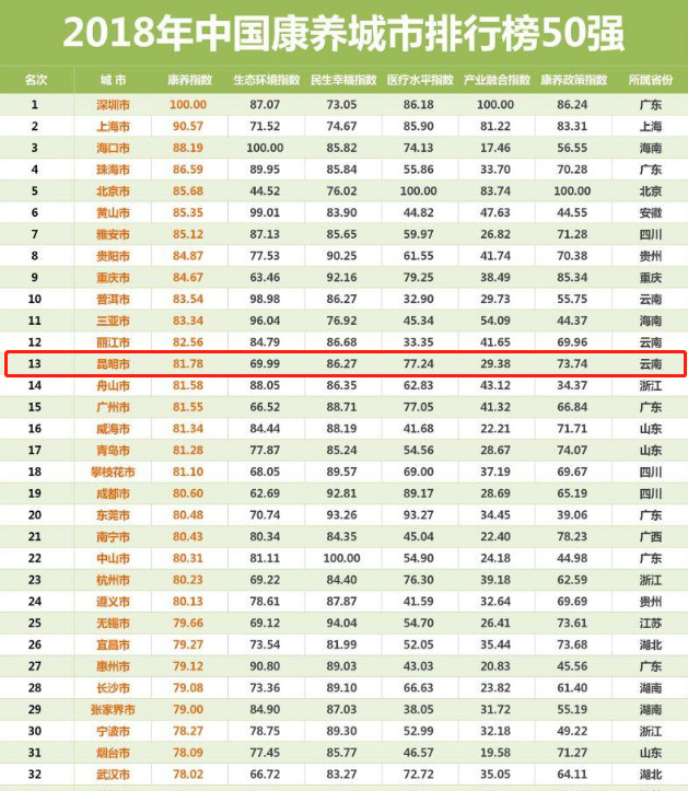昆明的四季如春、空气清新、阳光灿烂、生态宜人等优质的生态宜居环境以及作为省会城市的独家位置,早在2016年,昆明市提出要把“中国健康之城”作为昆明的三大城市品牌之一进行重点打造,而在云南打好“三张牌”的道路上,昆明也占据举足轻重的地位,除去在产业上的支持,凭借自身的生态资源和宜居环境,建设健康生活目的地和中国健康之城,成为是昆明发展转型升明确的道路和坚定的方向。