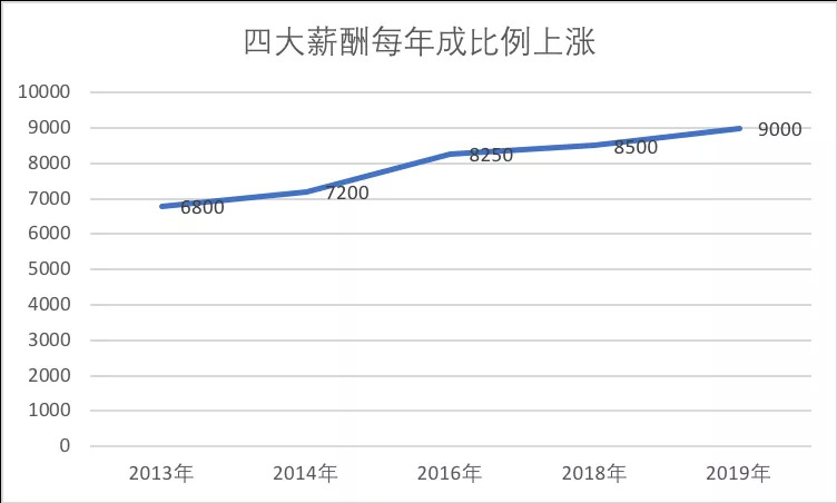 四大的工资每年都在成比例上涨