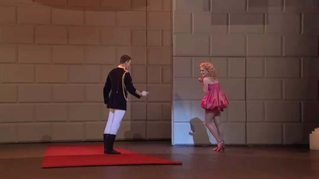 于是就有了王子的女友这个角色:舞台上唯一的超短裙桃色小妞。