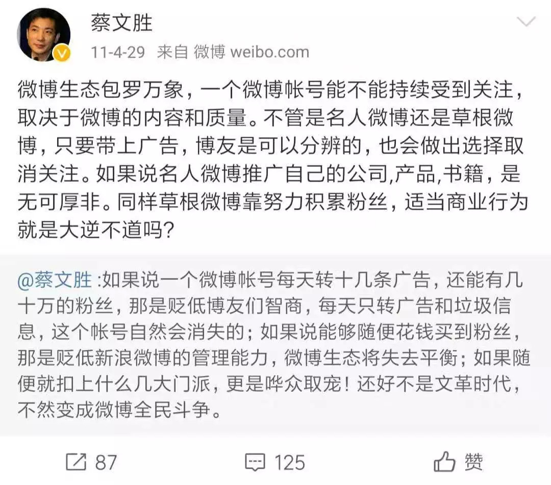 这不是微博一家的问题。2006年淘宝想做竞价排名,商家群起而攻之,逼得马云做出“三年不盈利”的承诺。平台做大了肯定要收税,收税就会引起民愤,这很正常。关键是收税的时间点和姿势。现在用户被教育这么多年,也都接受了平台也要恰饭的事实,微博也慢慢走上正轨。