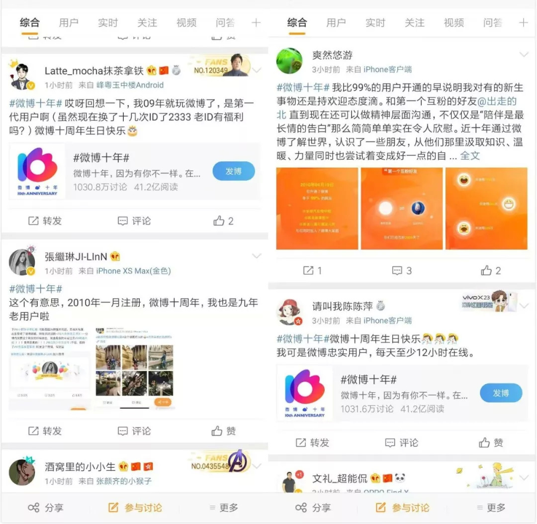 直到上周,微博做了一个#微博十年#的活动,很多人晒出了自己09年注册的截图。微信里也有人聊:我第一个关注的人是xx,x月x日凌晨4点我还在刷微博……我们才发现,原来微博已经十岁。有明星大V红了十年,也有小透明在这里水了十年。