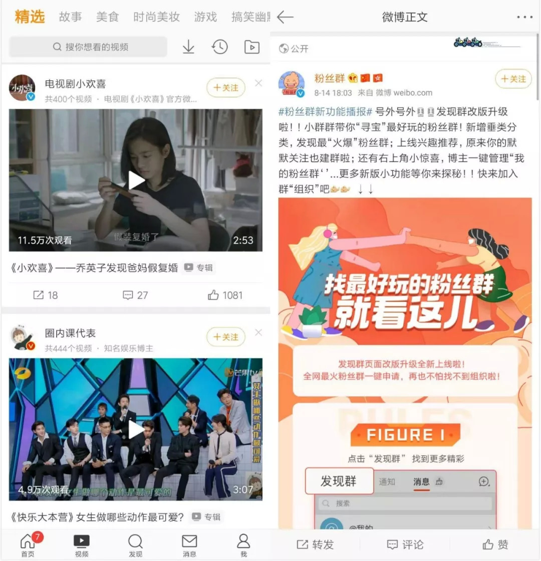 过去一年,微博就在往两个方向努力:一方面单独开辟视频Tab,给用户刷不完的爽感,同时提高广告填充率;另一方面也考虑了社交需求,推出时间线正常的“最新微博”、减缓压力的半年可见功能,以及铁粉、视频弹幕等功能。