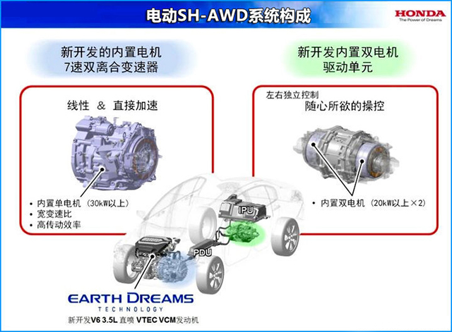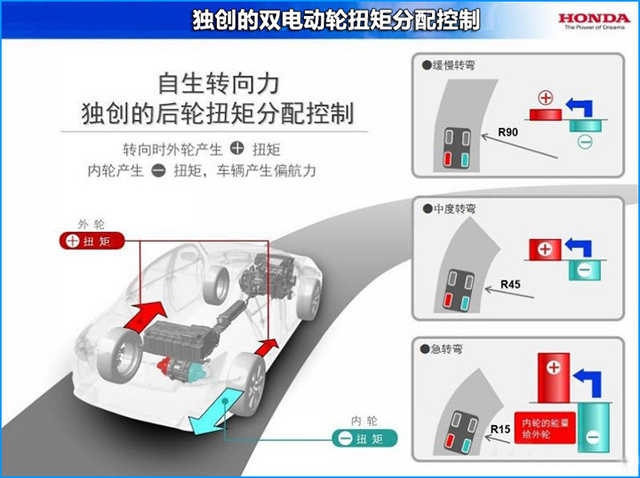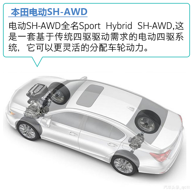 本田电动SH-AWD,这是一套混合动力驱动的AWD系统,或者称它是一种本田式的驱动理念更为合适,它的理念建立在传统四驱系统的驱动效果之上,但目的却是为了超越传统的四驱系统,举例来说,本田的电动SH-AWD系统可以非常灵活和智能的来为你分配每个车轮在各种行驶状态下动力需求。