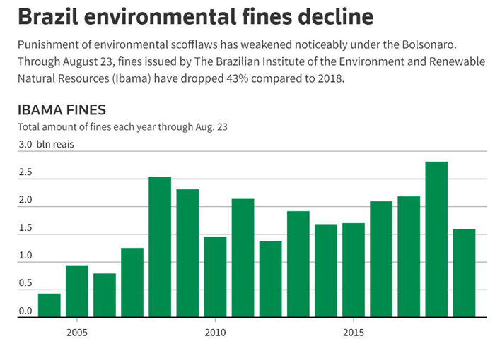 由于行动力度受限,根据政府数据,今年截至8月23日,环境和可再生资源署对环境犯罪行为开出的罚单数量比去年同期减少了29%;罚款金额也下降了43%。