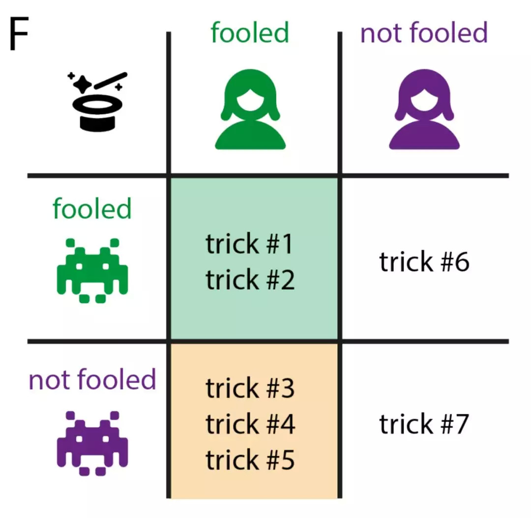 有趣的是,在开发出能与人类对抗的AI系统之前,最好的样本不是那些拒绝被愚弄的人,而是沉迷于被魔术愚弄带来的快感之中的人。