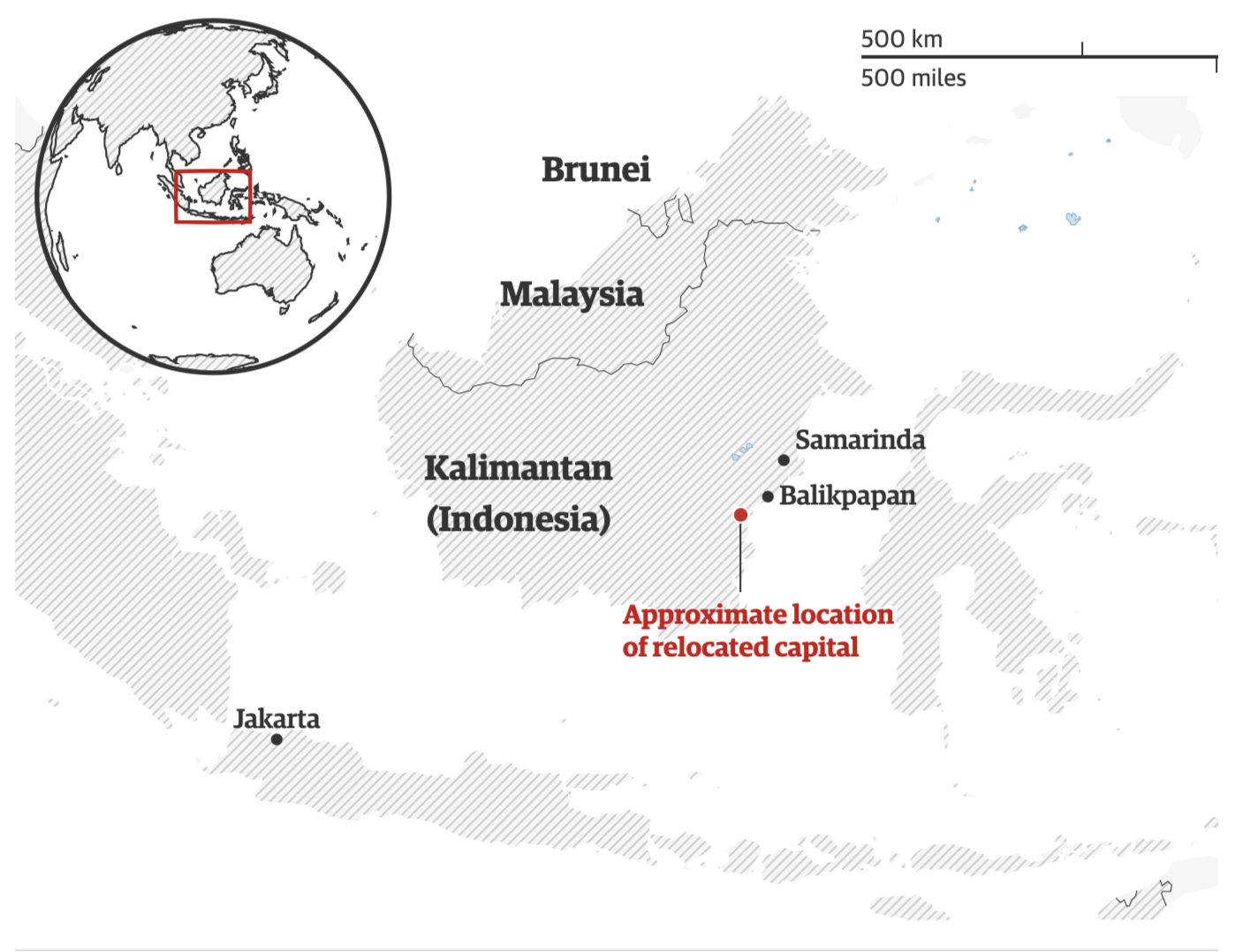 印度尼西亚政府在8月宣布,将在东加里曼丹省的北佩纳占巴塞与库泰卡塔内加拉的部分地区建设新首都,预计将在2020年底前动工,2024年前开启迁都程序。