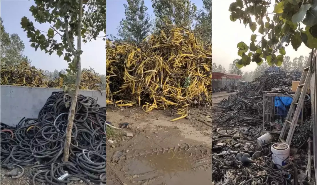大批单车的异动很快引起了内部重视,员工达到此地时已经找不到完整单车,看到的是堆积如山的轮胎、车座、车身,虽被肢解至此,ofo、摩拜、哈罗的品牌依旧清晰可分。