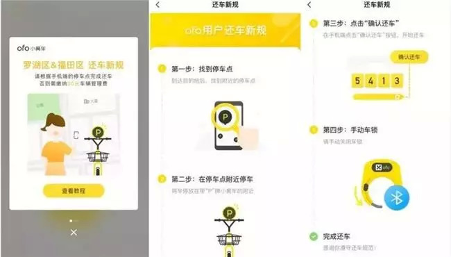 升级后的App,用户在用车时可见地图上标识为“P”的停车点,用户需要找到有装有“P”型提示牌的单车,在其附近才能正常停车。否则用户需要缴纳一定的管理费,第一次用户不被收取管理费,但会收到短信提示。多次之后则需缴纳最高20元的管理费。