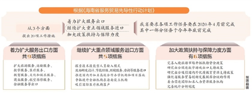 为发挥服务贸易在建设全岛自由贸易试验区中的先导作用,海南省近期开始实施服务贸易先导性行动计划,今年采取20项工作措施推动服务贸易加快发展。这是海南日报记者8月29日从省商务厅获悉的。