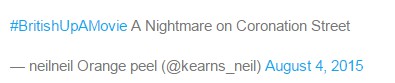 “加冕街的噩梦”。《加冕街》(Coronation Street)是英国电视史上播放时间最长、收视最高的肥皂剧,此处出自电影《艾尔姆大街的噩梦》(A Nightmare on Coronation Street),又译《猛鬼街》。