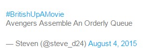 “复仇者乖乖排队集结”,大家都知道英国人总是乖乖排队,有着骨子里的绅士精神。出自美剧《复仇者集结》(Marvel’s Avengers Assemble)。