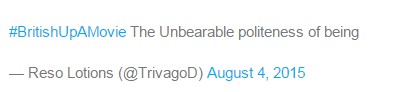 “生命不能承受之礼”,英式礼仪闻名全球。出自《生命不能承受之轻》,politeness与lightness谐音。