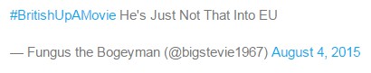EU与you谐音,出自电影《他其实没那么喜欢你》。英国人借此又调侃了一下英国与欧盟长久以来的爱恨情仇。