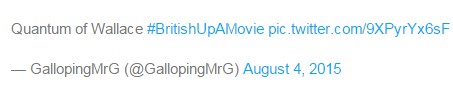 庆幸的是,Twitters最近火起来了一个话题#给电影加点英国味儿#,希望通过充满英国味儿的双关语来改写电影史。快来瞧瞧你能看懂几个:)