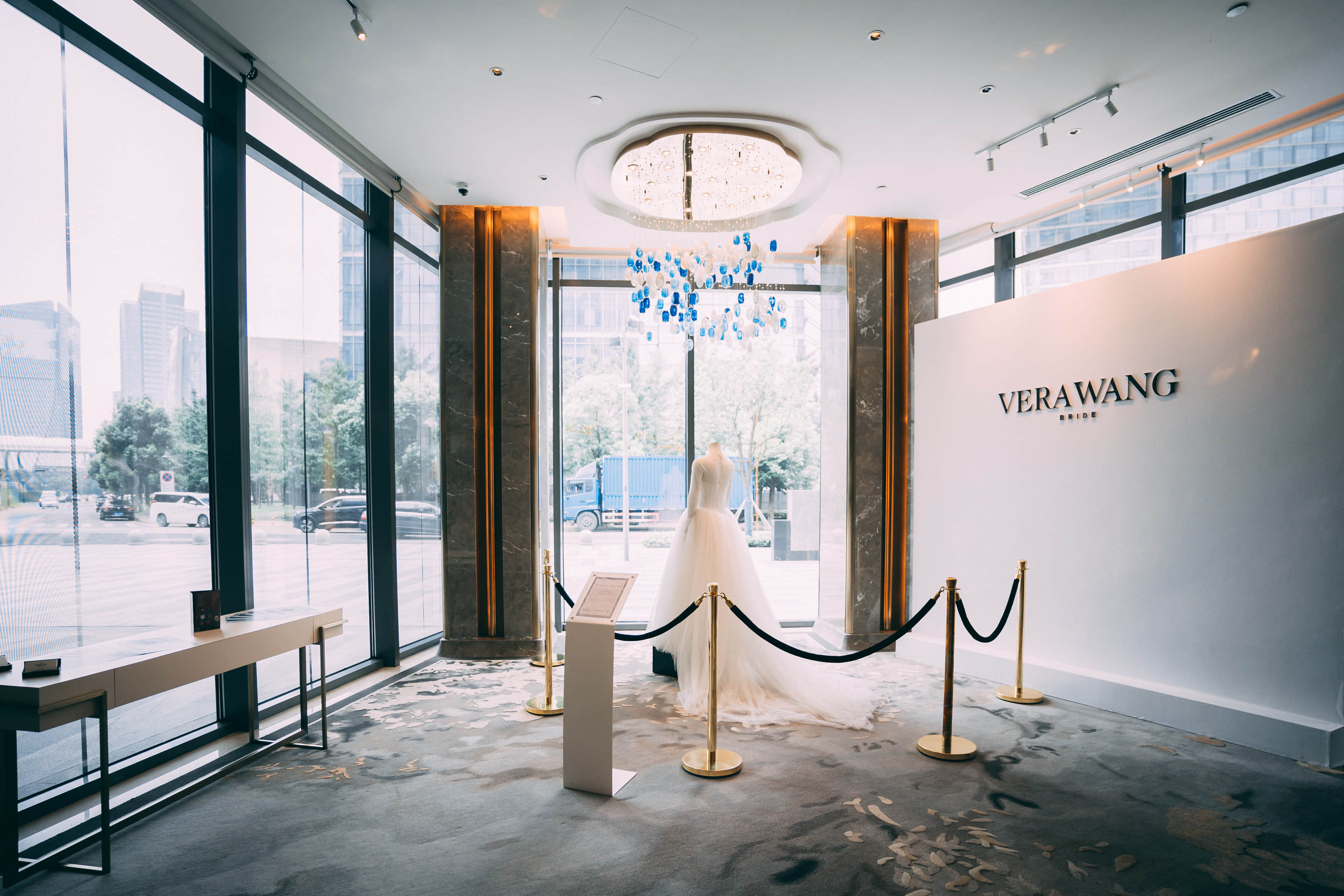 酒店作为一个综合的空间,跨界合作成了必修课之一。苏州园区香格里拉大酒店是苏州第一家与婚纱品牌 Vera Wang 合作的酒店,将产品放在大堂一角,也表示了酒店对婚宴的重视。