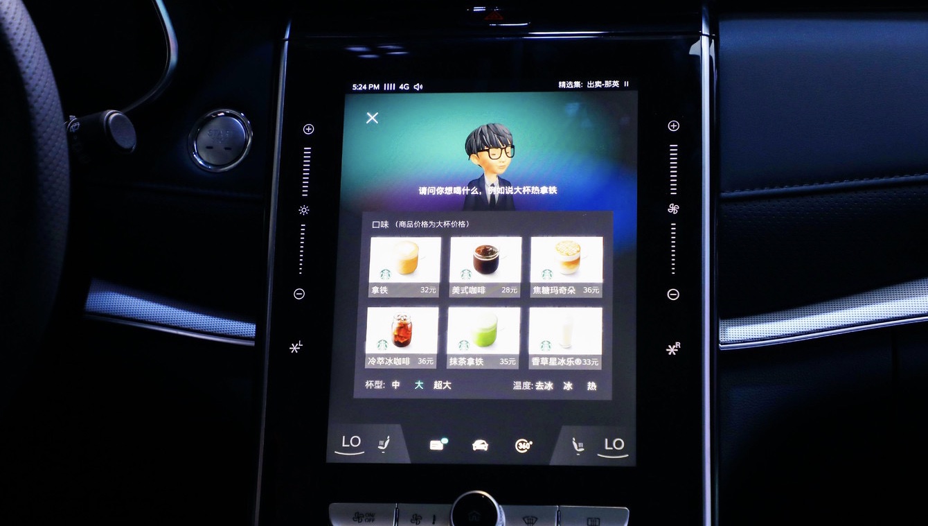 作为阿里巴巴投资的创业公司,斑马网络的车载智慧系统还接入了“饿了么”点餐,乘客可以在车中语音提示系统“我想喝咖啡”,屏幕中就出现了一位虚拟人物,询问你想要点单的咖啡类型,并推荐饿了么平台中的商家。不过,这款产品目前仅接入了“饿了么”平台上的星巴克,其他品牌还未有合作。