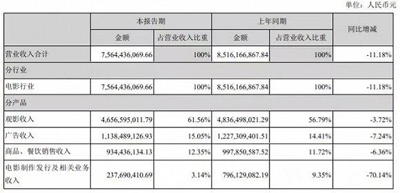 万达电影今年上半年“电影制作发行及相关业务收入”则只有2.27亿,与去年同期的7.96亿元相比大幅减少70.14%。万达电影电视剧板块业务虽然大幅上升,但是今年上半年的总营业也只有9363万,对于整个万达电影的收入来说无异于杯水车薪。
