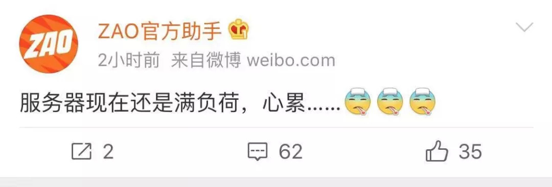 从8月30日晚上开始通过“ZAO”生成的视频片段便在朋友圈刷屏。而短时间内其服务器因访问量过高还出现了“造视频”排队拥堵的情况。其官微透露,花700万租的服务器,昨晚已经消耗了1/3。按目前走势,“ZAO”很大可能会成为2019年国内第一款新晋爆款APP。