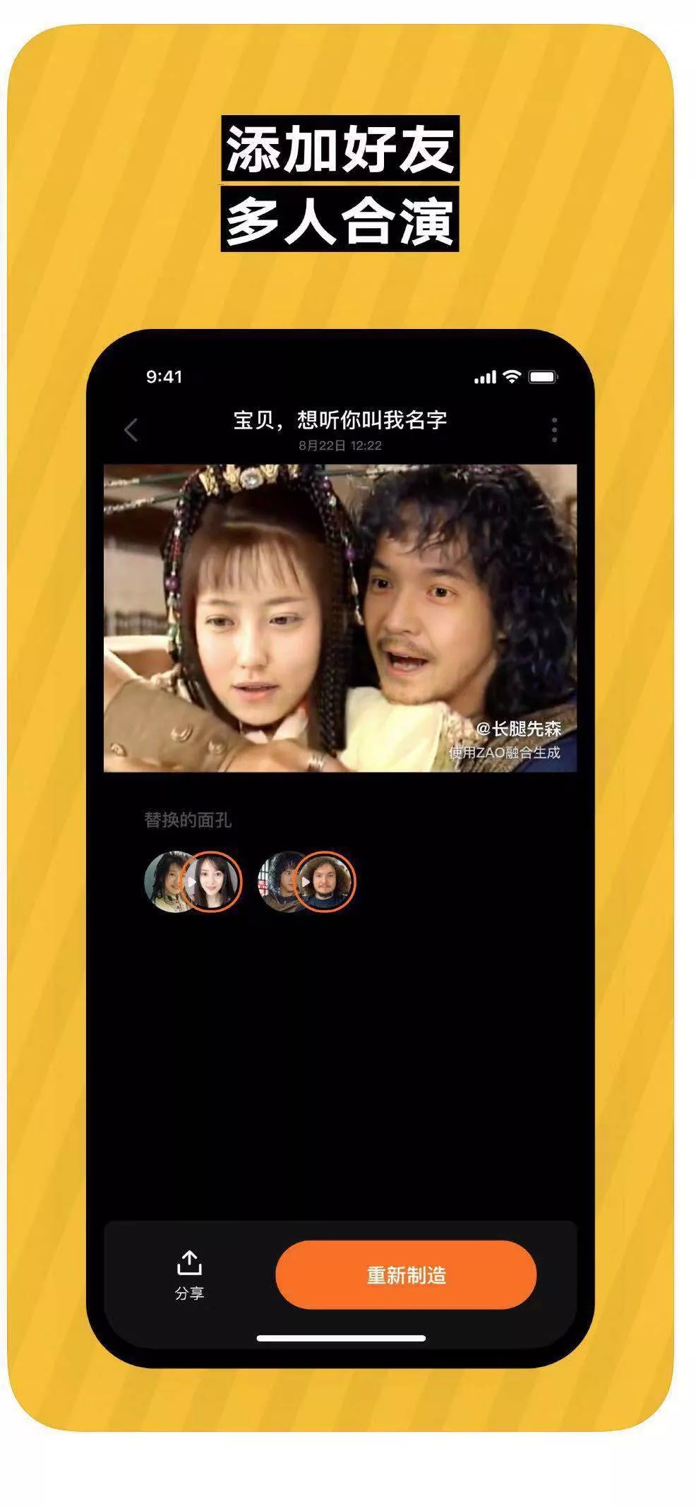 另外用户还可以通过添加好友,使用对方的面孔合演视频,可以想象一下甜宠剧里的男女主角换成了你和你的女朋友的脸或许也是一种奇妙的体验?