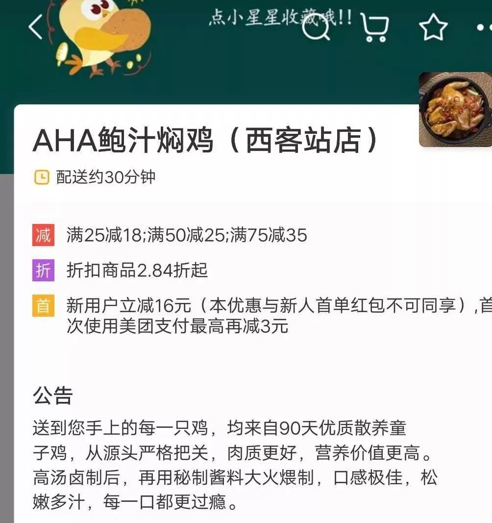 在山东济南,有一家AHA(苏雨)鲍汁焖鸡的品牌悄悄在平台上崭露头角:门店覆盖全国,开店近300家;单店日收10000+,月入超30万;在品类赛道上,化零为整,回归大众,用一整只焖鸡,突破品类局限,做创新突围。