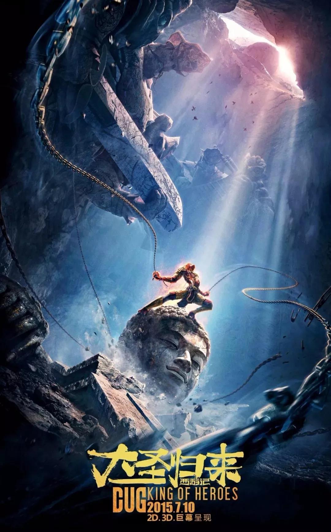 悟空、佛头、锁链、天王塑像、佛眼洞口,这幅海报不仅有层次感,还透露着一股酷劲和不屈服的精神,而这恰恰是《大圣归来》影片的精髓所在,通过海报这种静态设计,透露出的却是一种动态的氛围,这在海报设计中确实是很高的境界。