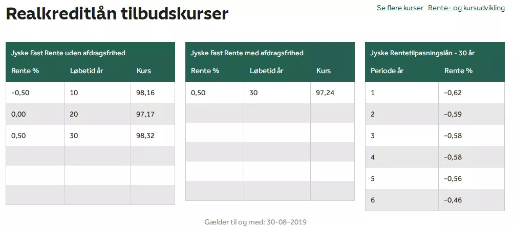 日德兰银行官网显示,目前该行10年期购房贷款利率为-0.5%。