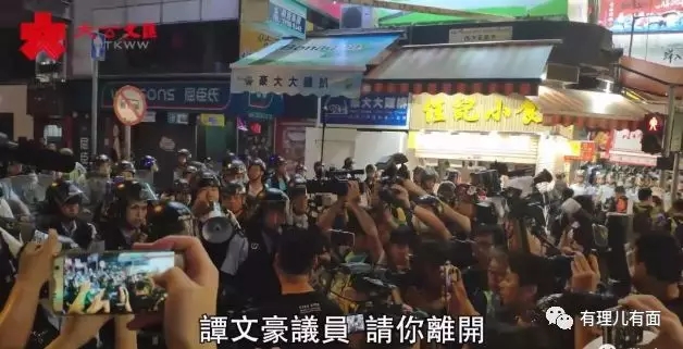 谭文豪,就是最擅长在警察面前表演的那一个。7月7日晚,有大批示威者在弥敦道非法集结,肆意挑衅现场警察。警察决定推进进行驱散时,谭文豪立即现身,故意走到警方防线前,吸引记者聚集采访,使本来已经混乱的场面更加混乱。其故意刁难前线警务人员,不仅站在警察前面阻碍警方工作,还辱骂、恐吓警察。警察让谭文豪离开,这个“港独”议员立即开始撒泼,指着警察质问什么职位,称如果不是指挥官就不要讲话,并持续挑拨其他人的仇警情绪,带头制造矛盾及冲突。