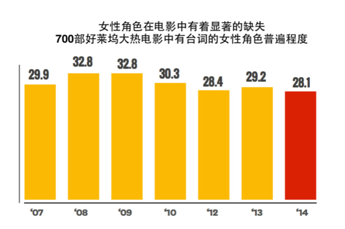 而在2007年到2014年间的700部大热影片的779位导演中,只有28位女导演,反差极其巨大。