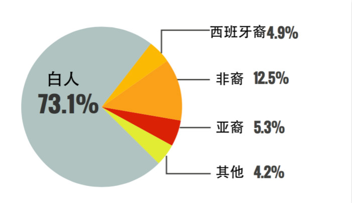 然而,在美国影坛,性别不平等并不是唯一的问题,大荧幕上少数族裔的劣势也十分明显。在2014年的100部大片中,接近四分之三的角色为白人,而剩下的非白人角色中,12.5%为非裔,4.9%为西班牙裔,亚裔也只占到5.3%。