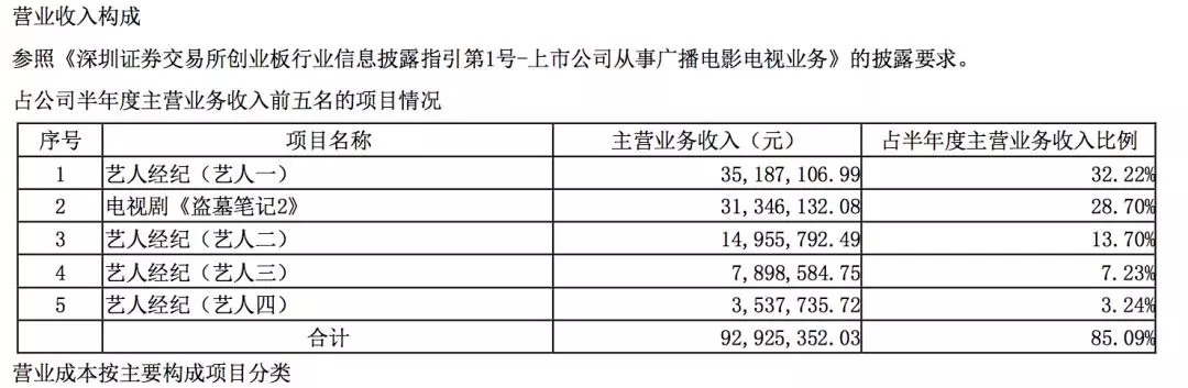 其中排名第一的艺人经纪收入是3518.71万元。按照目前欢瑞世纪拥有杨紫、任嘉伦、秦俊杰、茅子俊、颖儿、袁冰妍、赵樱子、成毅、韩栋、张睿、李曼、王劲松、何中华、傅方俊等46位签约艺人的排序和咖位综合判断,排名第一的艺人是杨紫,换句话说就是杨紫上半年为欢瑞世纪创收3518.71万元。