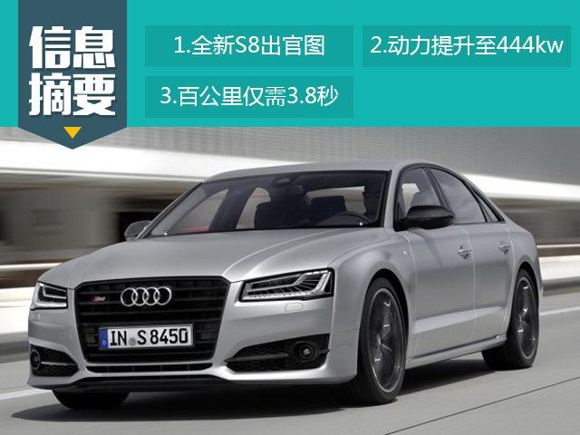 日前,奥迪正式发布了S8 plus的官图,新车相比现款S8最大的变化是动力方面得到了提升,新车最大功率达到444kw,最高时速达到305km/h,该车或将于9月开幕的法兰克福车展正式亮相。