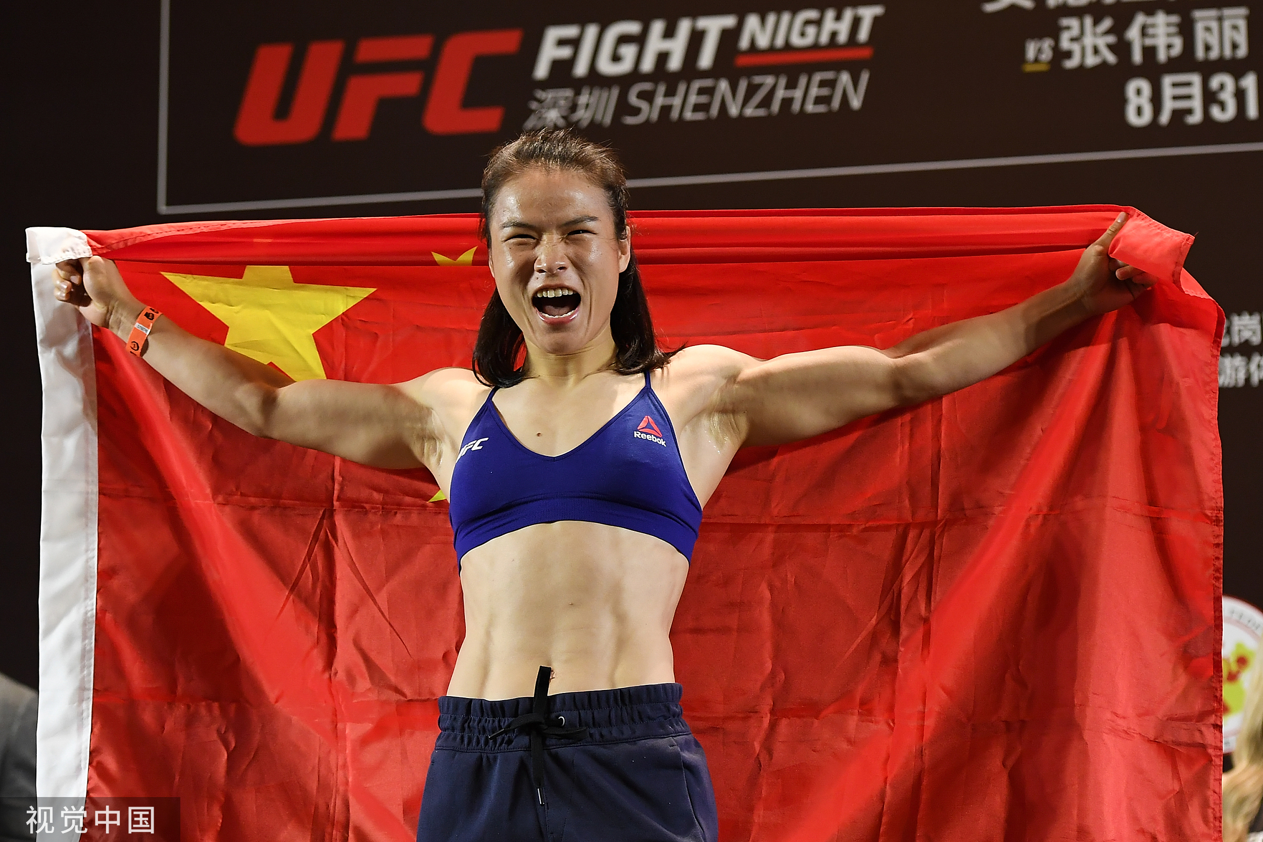 仅仅用时42秒,此前已19连胜的中国女选手张伟丽,就TKO(技术性击倒)现役UFC女草量级拳王杰西卡·安德拉德,成为中国首位UFC世界冠军。