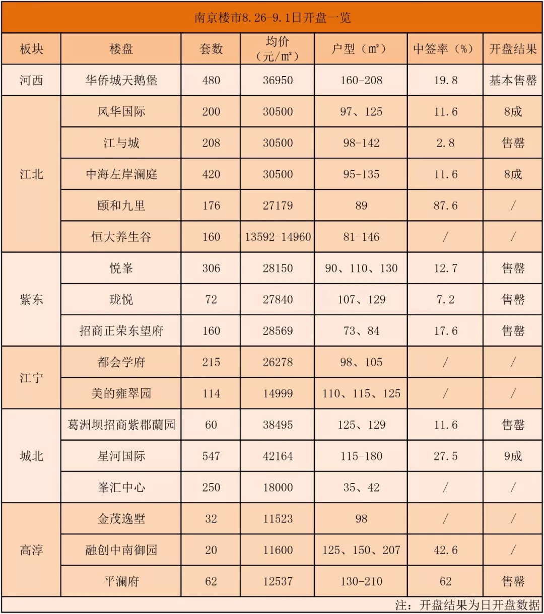 据统计,上周共有17盘开盘,分布于河西、江北、紫东、江宁、城北、高淳六大板块。其中当日基本售罄的有位于河西南纯新盘华侨城天鹅堡、核心区的江与城、紫东的悦峯、珑悦、招商正荣东望府、城北小市的葛洲坝招商紫郡蘭园、高淳的平澜府。