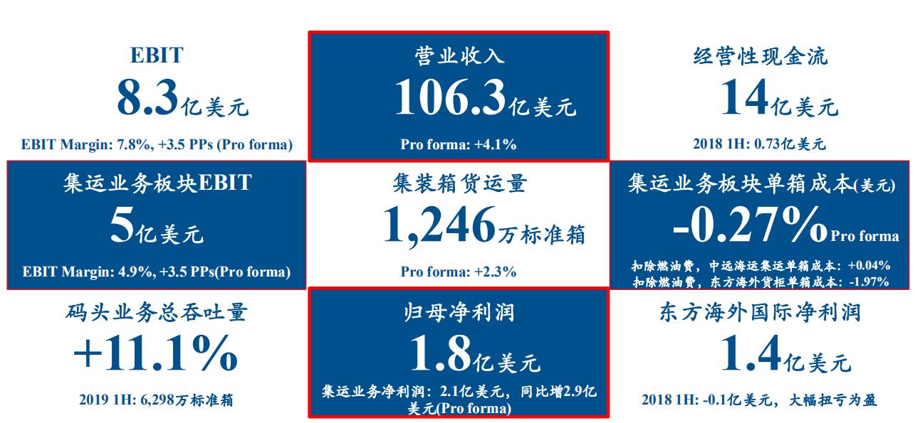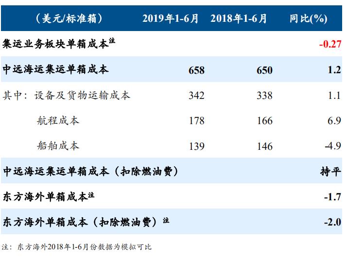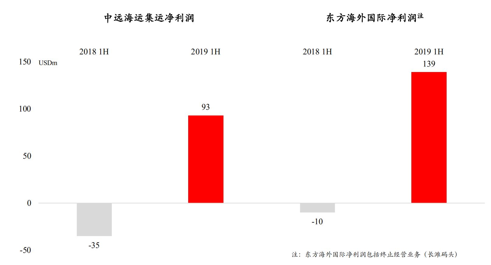 值得注意的是,在上半年集运业务的货运量同比增长仅2%、成本持平的背景下,中远海控集运业务旗下的双品牌——“中远海运集运”与“东方海外货柜”公司在2019年上半年同步实现扭亏为盈。