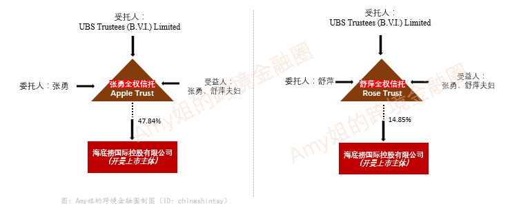 通过“移民+离岸信托”,张勇夫妇约1,000亿市值的海底捞股票全纳入了英美普通法系(离岸信托)的保护之下,并最终流回不(对海外收入)征税的新加坡。