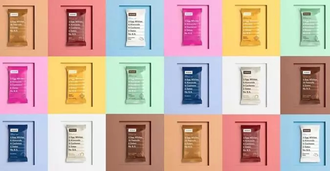 在2018年被家乐氏以6亿美元收购的RXBar就是凭借高蛋白高性能的产品配方获得了成功,包装上巧妙的成分列表简单却突出了RXBar的与众不同。