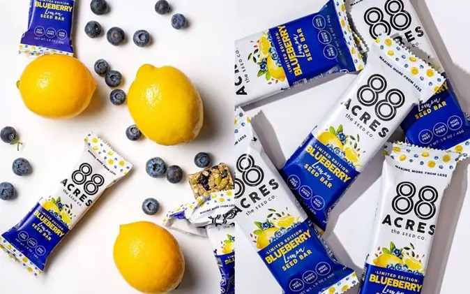 果仁和蓝莓也越来越受欢迎。88 Acres是一家专注于校园健康零食的品牌,它最近推出了一系列新的蓝莓柠檬零食棒,含有丰富的南瓜籽、葵花籽、亚麻籽等成分,已经被认证为不含八大过敏原、非转基因。