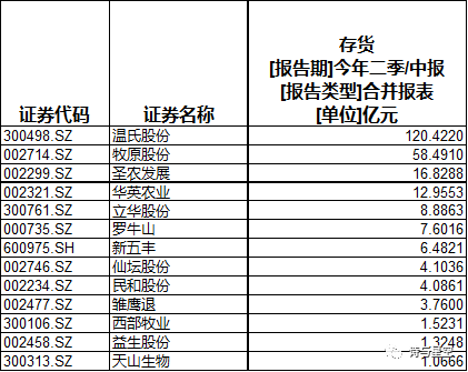表哥统计了A股养猪概念股(一部分是养鸡)的存货情况,主要构成是消费性生物资产,可以大致判断存栏量。存栏量大的,下半年如果非洲猪瘟不再惹是生非,大概率营收和净利润会大幅增加!