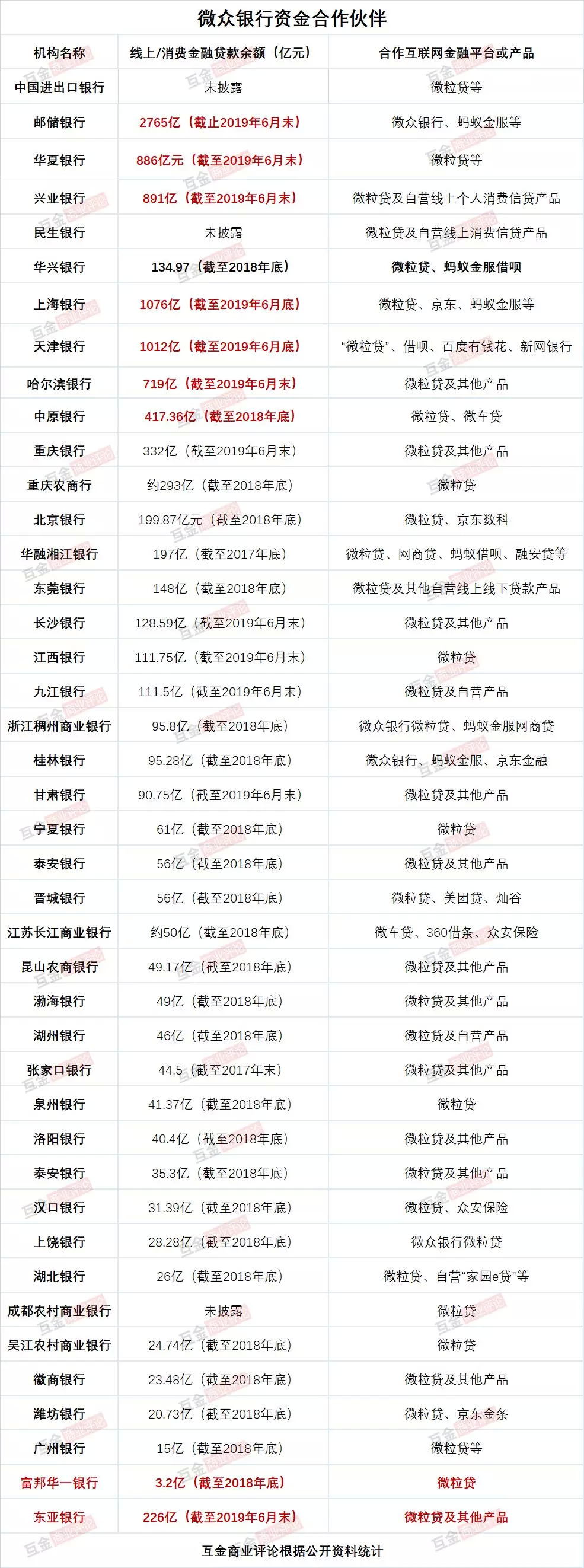 下面选取部分微众银行的资金方,对其微粒贷等互联网贷款产品业务现状进行说明。