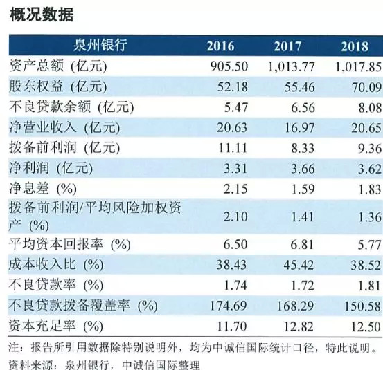 2018年,泉州银行实现营业收入20.65亿元,净利润3.62亿元,不良贷款率1.81%。