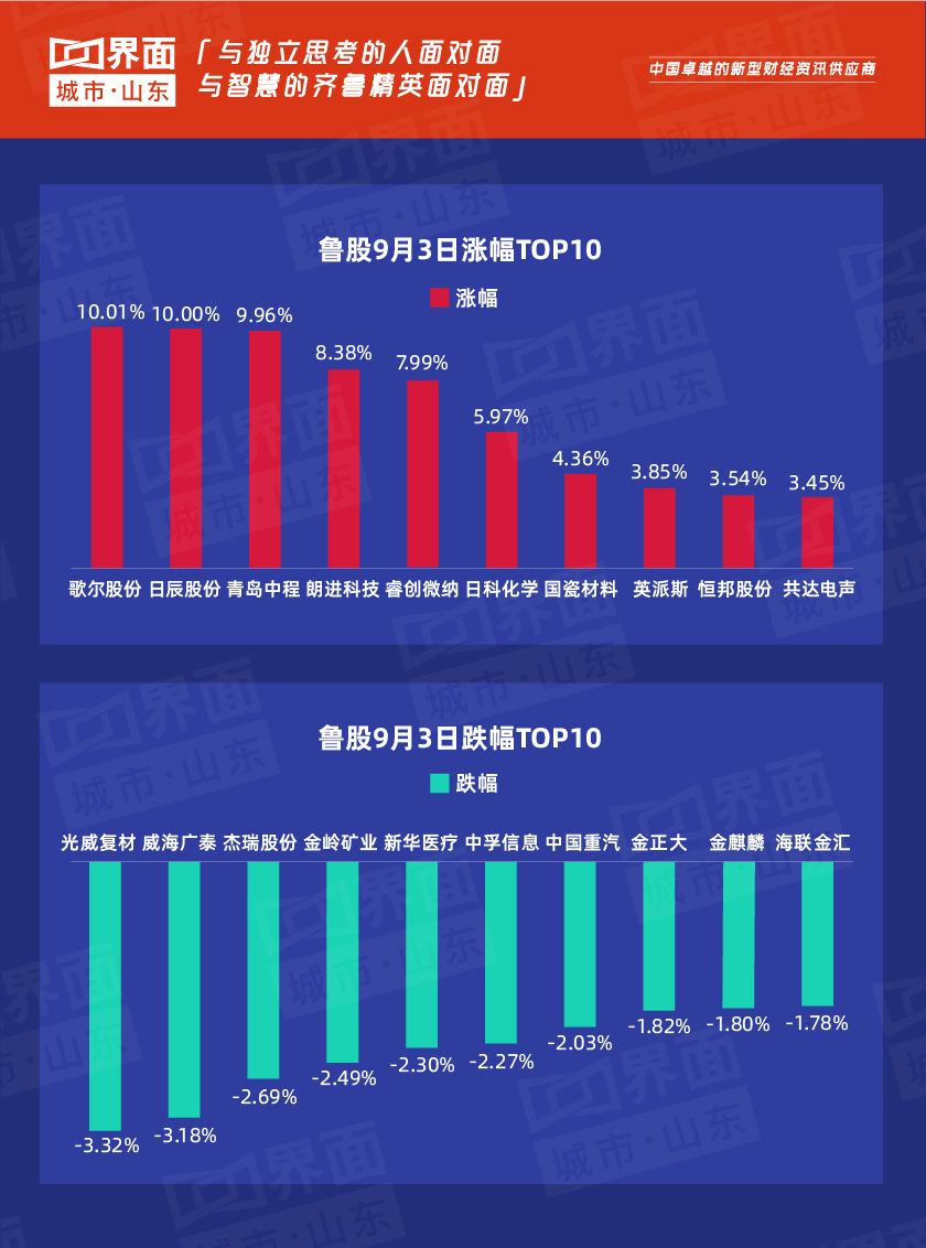 青岛市涨幅榜首:日辰股份(603755),涨幅10.00%,股价33.11元,总市值32.7亿元;