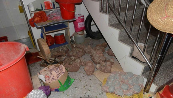 村民家偷藏的恐龙蛋化石。图片来源:CFP