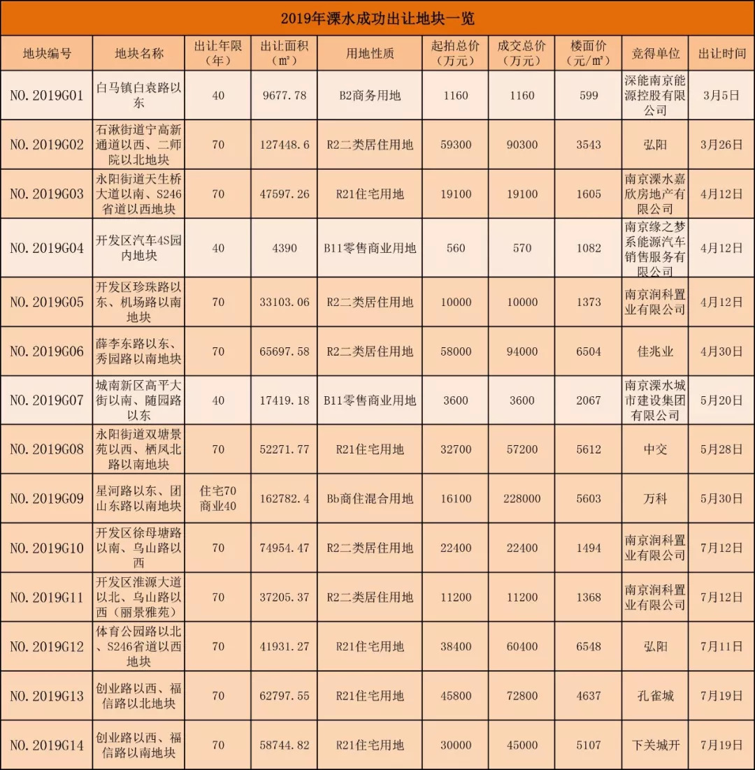 随着各大“万元盘”的终结,新盘也越来越少。但今年来,溧水土拍也吸引了不少新鲜血液。到目前为止今年一共出让14幅地块,揽金约71.57亿元,内有11幅涉宅地,吸引了包括弘阳、佳兆业、中交、万科、孔雀城等名牌房企入驻。