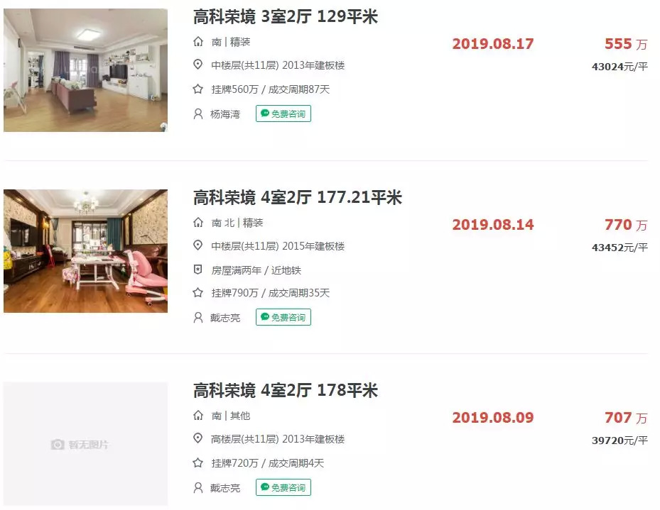 链家网显示二手房挂牌均价以达到37776元/㎡,8月14日成交一套177㎡的房源,单价更是高达43452元/㎡。