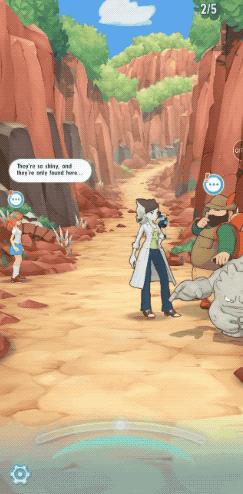 除此之外,《宝可梦大师》在某些章节会有探索模式,但玩家能做也只局限于滑动屏幕、点击人物对话、点击道具互动、按前进按钮进入下个区域等,这些的简单操作而已。