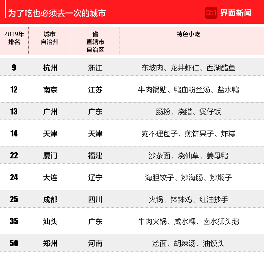 榜单上的有些城市不仅好玩,还很好吃。“粉丝”中吃货比例不在少数。对于游客来说并不只有名胜古迹能令人神往,特色小吃也可以扣人心弦,因此有一些城市被称为“为了吃也必须去一次的城市”。