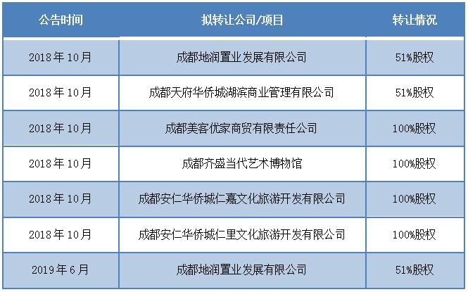 以成都为例,据公开资料显示,自2018年以来,华侨城转让了包括大邑安仁古镇项目在内的多个项目股权。