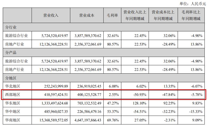 分地区来看,华侨城五大地区(华北地区、西部地区、华东地区、华中地区、华南地区)中,以华南地区表现较为突出,地区营业收入达153.69亿元,成为其总收入主要贡献者。