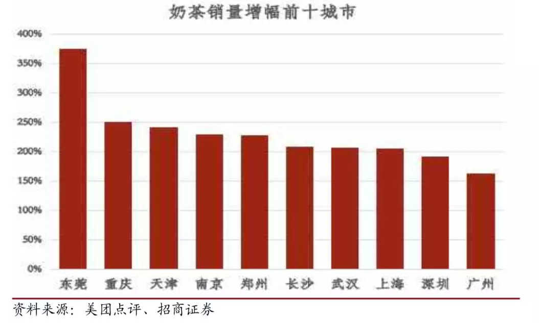 随着消费升级的下沉,2018 年奶茶销量增幅前十的城市有七个均不是一线城市。旺盛的消费需求和高速扩张的现状说明二三线城市新式茶饮的发展空间巨大,是门店布局的新蓝海。
