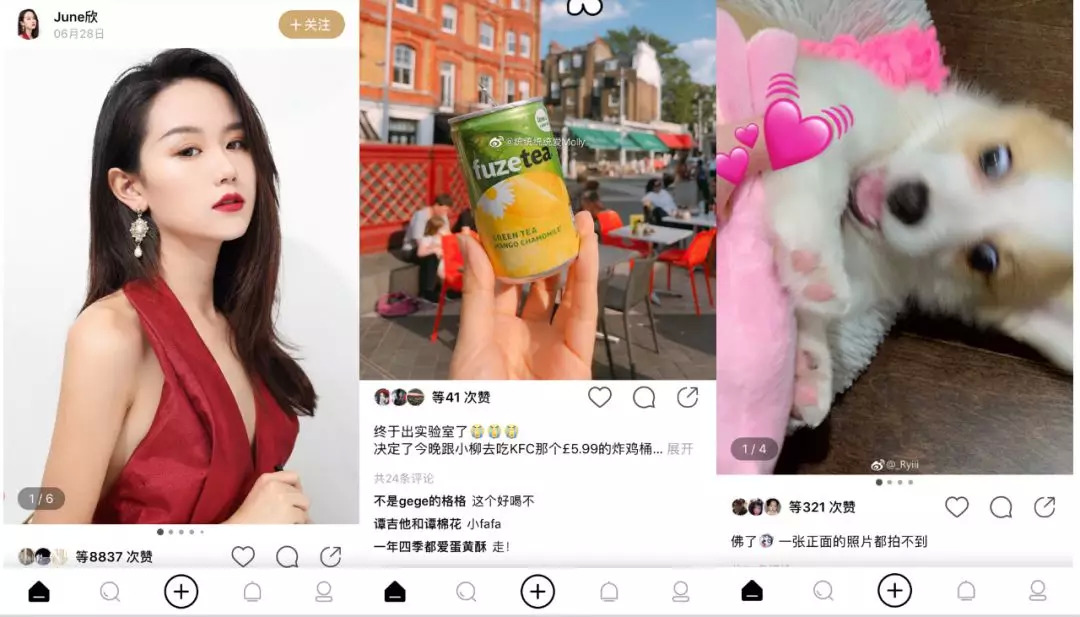 相对于内部改革,绿洲的出现则是微博试图开拓新的年轻用户市场,对准更多青年。所以,绿洲的页面设计是年轻用户追捧的ins风;绿洲的版块划分基于流行的垂直兴趣划分;而绿洲的运营玩法背靠热门的种草文化。